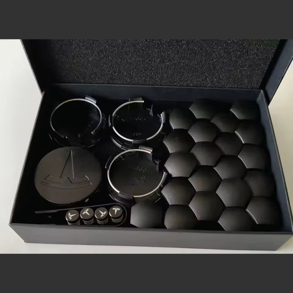 Die Tesla Model 3/Y/S Radnabenabdeckungen sind aus hochwertigen Materialien gefertigt, die robust und langlebig sind. Das schwarze Finish mit silbernem Logo verleiht Ihrem Tesla einen eleganten und stilvollen Look.