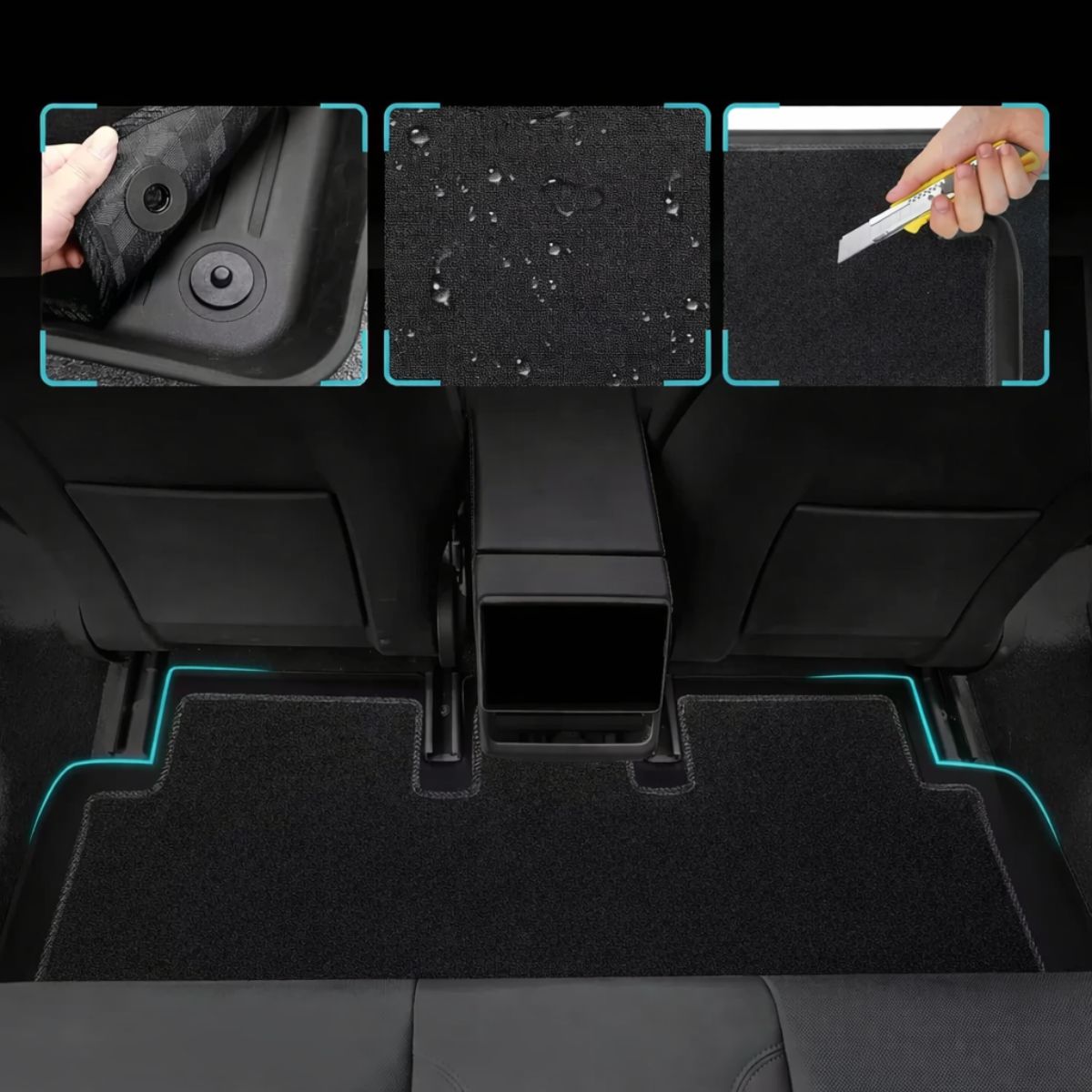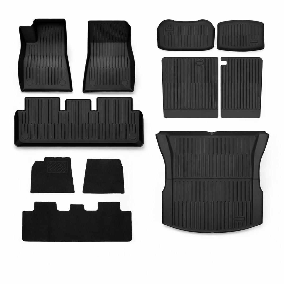 • Erweiterbar mit Kofferraum-, Subtrunk- , Frunk-Matten und Rücksitzlehnen-Schutz für vollständige Kofferraumabdeckung